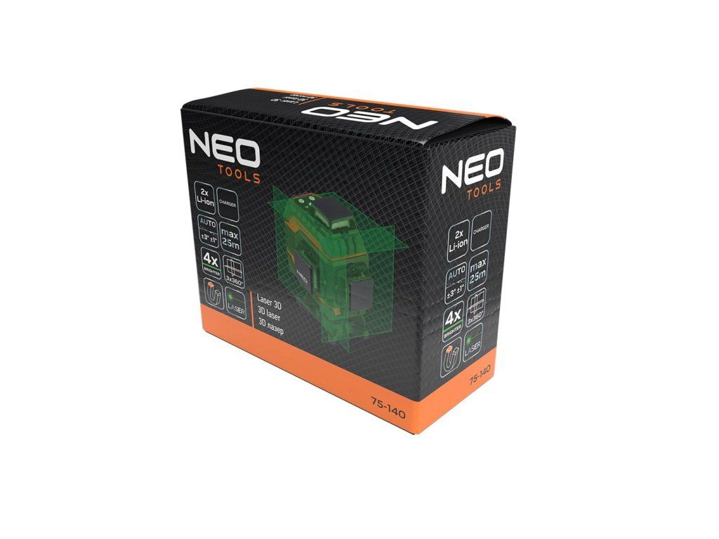 3D krížový líniový laser NEO (75-140), 12 čiar, zelený lúč + príslušenstvo