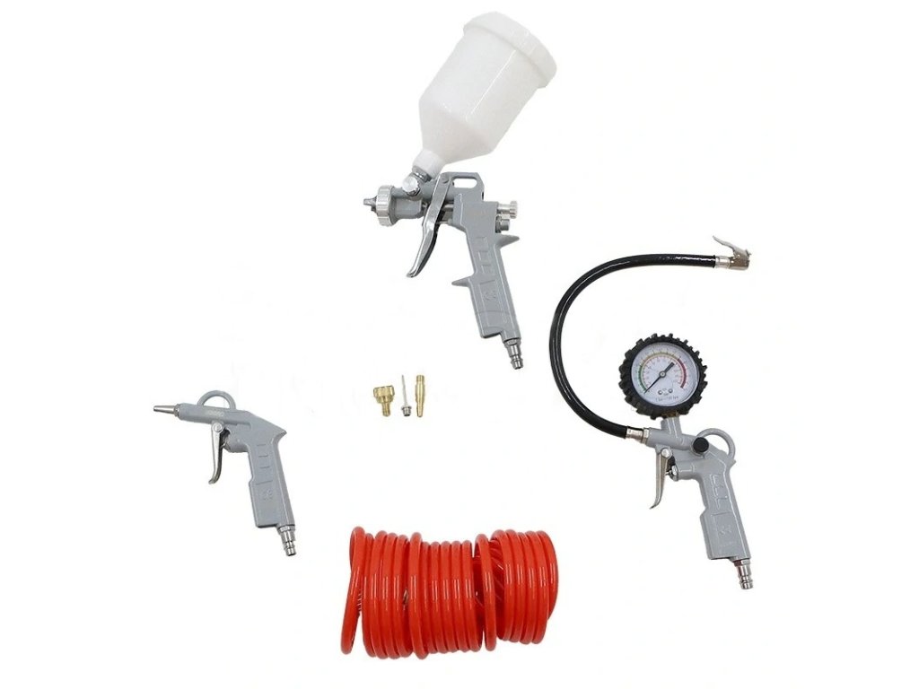 Pištoľ s manometrom na nafukovanieOfukovacia pištoľStriekacia pištoľŠpirálová hadicaVrátane 3 trysiek