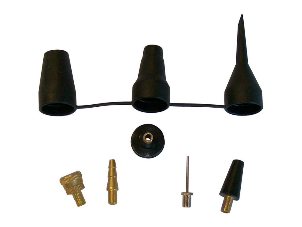 Adaptéry na fúkanie (ihla na nafukovanie lôpt, vsuvka na bicykle, adaptér na nafukovanie matracov, adaptér na nafukovanie gumových člnov), kompatibilné so všetkými typmi hustiliek na pneumatiky so skrutkovým ventilom a ventilovou zástrčkou Michelin.