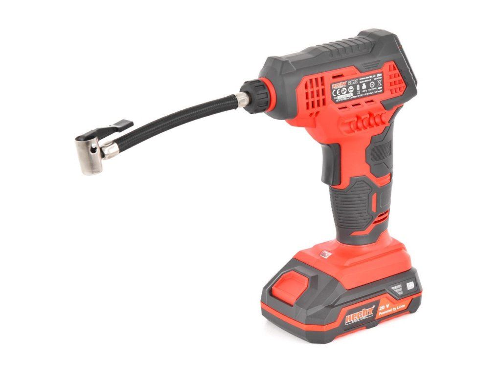 S týmto príručným a zároveň výkonným kompresorom už nie je potrebné zložito rozpletať a naťahovať dlhé hadice veľkých kompresorov, nepotrebujete elektrinu. Stačí nasadiť akumulátor, pripojiť hadičku na ventil a stlačiť spúšť.