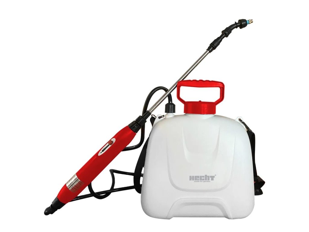 Akumulátorový tlakový postrekovač HECHT 4050. Teleskopická rúrka s tryskou. Doba prevádzky na jedno nabitie až 120 minút. Nádrž 5 l. Ramenné popruhy súčasťou.