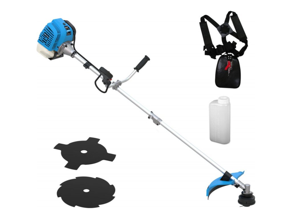 Krovinorez s automatickou odstredivou spojkou, kompaktnými ovládacími prvkami v rukoväti. Palivové čerpadlo Primer pre jednoduchšie štartovanie. Vírivý nôž (8 zubov), hviezdicový nôž (4 zuby), strunová cievka s automatickým naklonením.