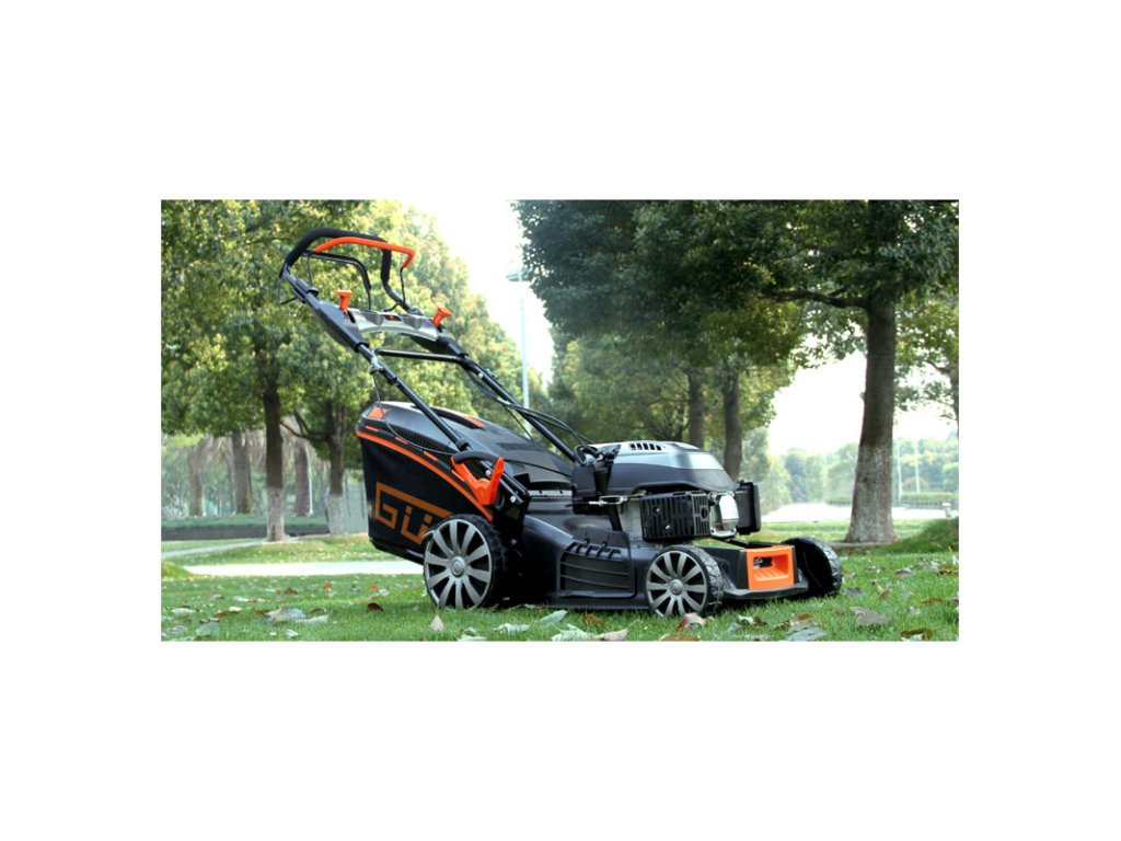 Najštýlovejšia kosačka s pojazdom zo série PREMIUM 2020 značky Güde so záberom 480 mm, centrálnym nastavením výšky kosenia, mulčovacím nožom, mulčovacou záslepkou a bočným vyhadzovaním. Kosačka má mohutný a pevný lakovaný oceľový skelet, penové rukoväte, sytičovú klapku a reguláciu otáčok na madle. Pre zvýšenie pohodlia pri práci dopomáhajú veľké kolieska uložené na ložiskách, ktoré majú puklice z oboch strán, čím sa zabráni zachytávaniu pokosenej trávy do kolies a následnému problému s čistením. Zároveň však zostávajú štýlové a dopĺňajú celkový dojem kosačky. Kosačka má zároveň na madlách priestor na odkladanie nápoja, alebo iných drobných predmetov. Pojazd kosačky je zabezpečený prepracovanou prevodovkou, ktorá je úplne zakrytovaná vrátane náhonového remeňa. Čistenie noža a vnútornej časti skeletu je jednoduché vďaka rýchlospojke na pripojenie záhradnej hadice.