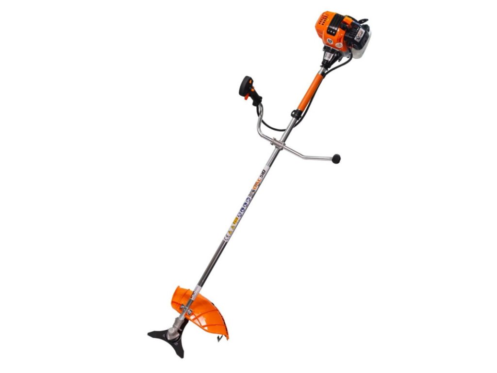 Dvojitý vyvažovací popruh a ergonomické rukoväte: Krovinorez je vybavený dvojitým vyvažovacím popruhom a ergonomickými 2-segmentovými rukoväťami a zaisťuje rovnomerné rozloženie hmotnosti a zvýšené pohodlie pri dlhodobom používaní.