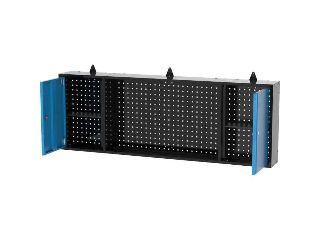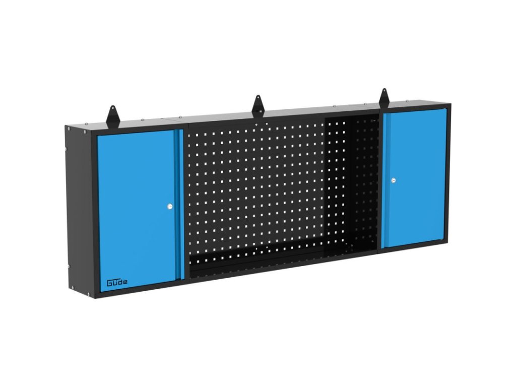 Dvojdverová závesná skrinka s prakticky integrovaným perforovaným panelom je dokonalým doplnkom radu Güde Eco-Line, s ktorým sa teraz dá optimálne využiť priestor na stene nad dvoma pracovnými stolmi XL od výrobcu GÜDE.