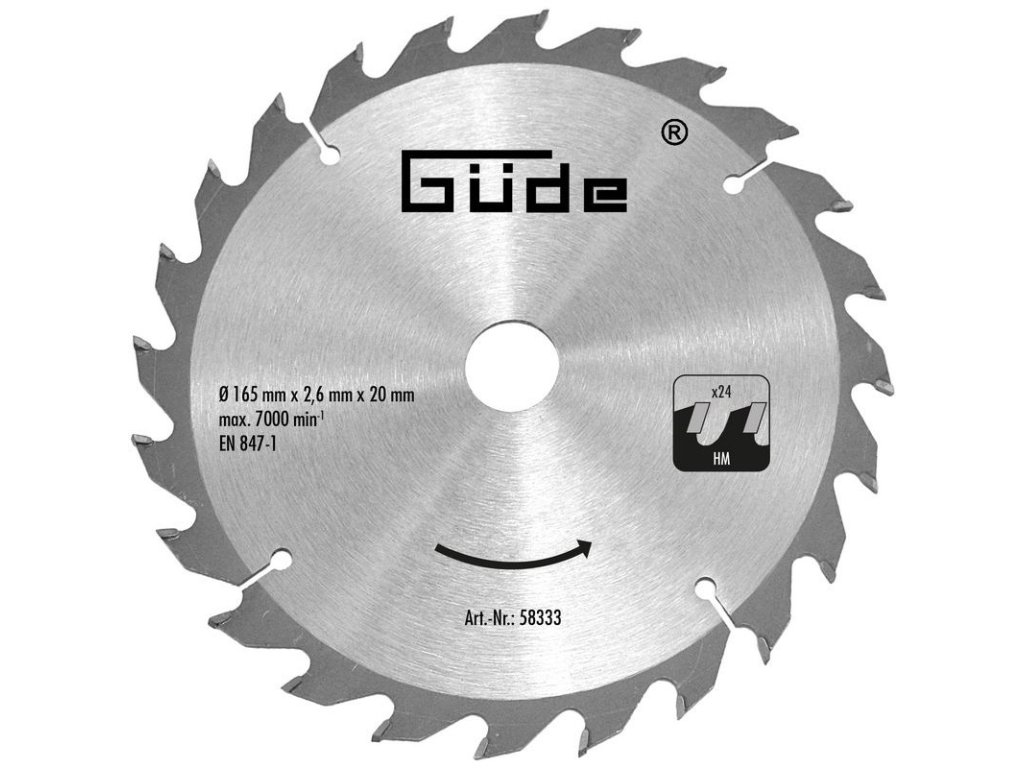 Pílový kotúč do ponorných a okružných píl vhodný na rezanie masívneho dreva, drevotriesky, MDF dosiek. Vhodný ku Ponornej píle TS 57-1200 SET (kód tovaru: 58138), ku Ponornej píle Güde TS 57-1400 KE SET (kód tovaru: 58232), k Aku okružnej píle KS 20-201-24 (kód tovaru: 58811).