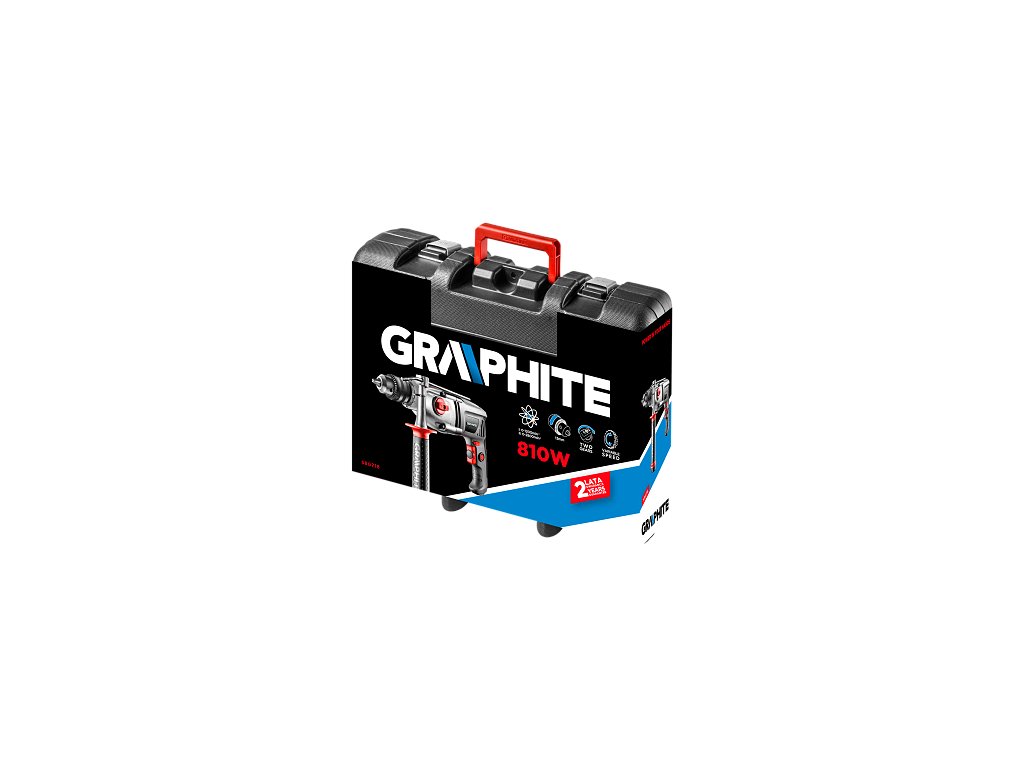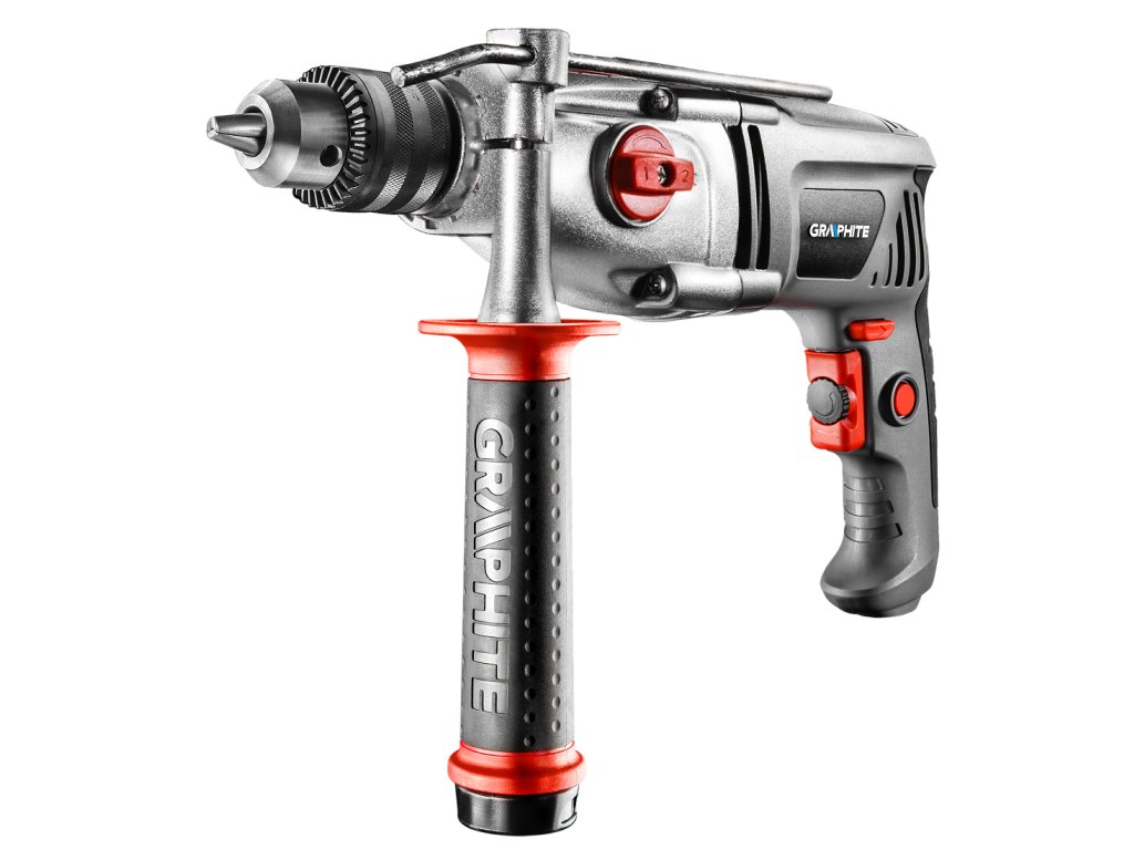 Univerzálna príklepová vŕtačka GRAPHITE s výkonom 850 W si perfektne poradí s materiálmi ako drevo, plast, kov a keramika. Keď prepnete na režim vŕtania s príklepom, vŕtanie do materiálov ako betón alebo tehla je rovnako plynulé. Vŕtačka dosahuje pri vŕtaní 3 000 otáčok za minútu a pri zapnutí príklepu dosahuje frekvencia nárazov 48 000 za minútu. Elektrické náradie je schopné otáčať hlavou doprava a doľava. Ergonomický dizajn, nízka hmotnosť zariadenia a dlhý napájací kábel určite uľahčia prácu na ťažko prístupných miestach. Pogumovaná hlavná rukoväť zvyšuje komfort a bezpečnosť práce. Skladovanie a prepravu uľahčuje priehradka na vrtáky umiestnená v prídavnej rukoväti a praktickom kufríku.