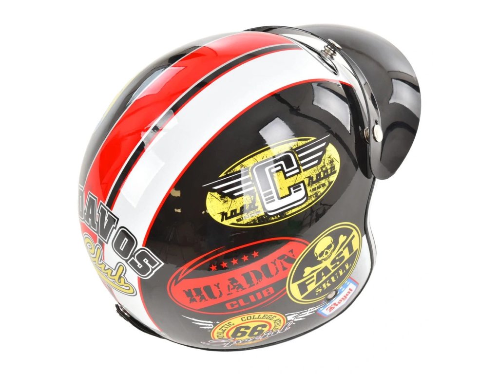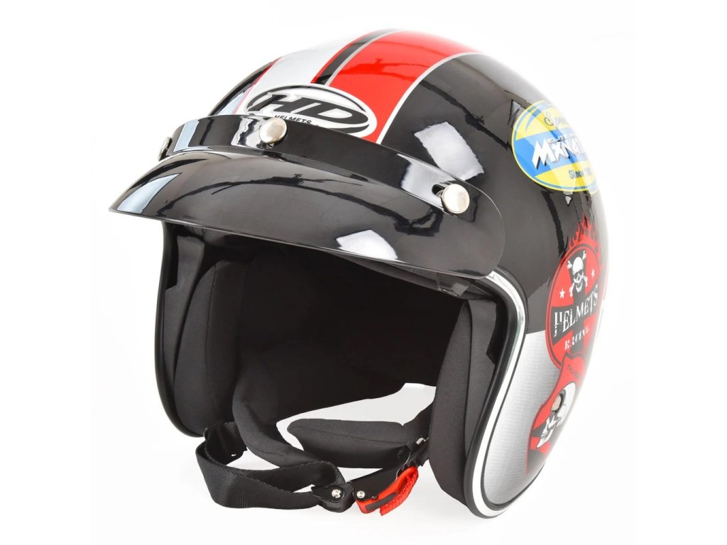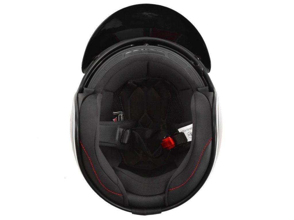 Ochranná prilba vhodná pre skútre a motocykle. Európska homologácia. Materiál ABS. Veľkosť S (obvod hlavy 55-56 cm). Vnútri je odnímateľná / umývateľná a pohodlná vložka, upínací remienok s rýchlospojkou. Helma má kvalitnú povrchovú úpravu a nastaviteľný štít.