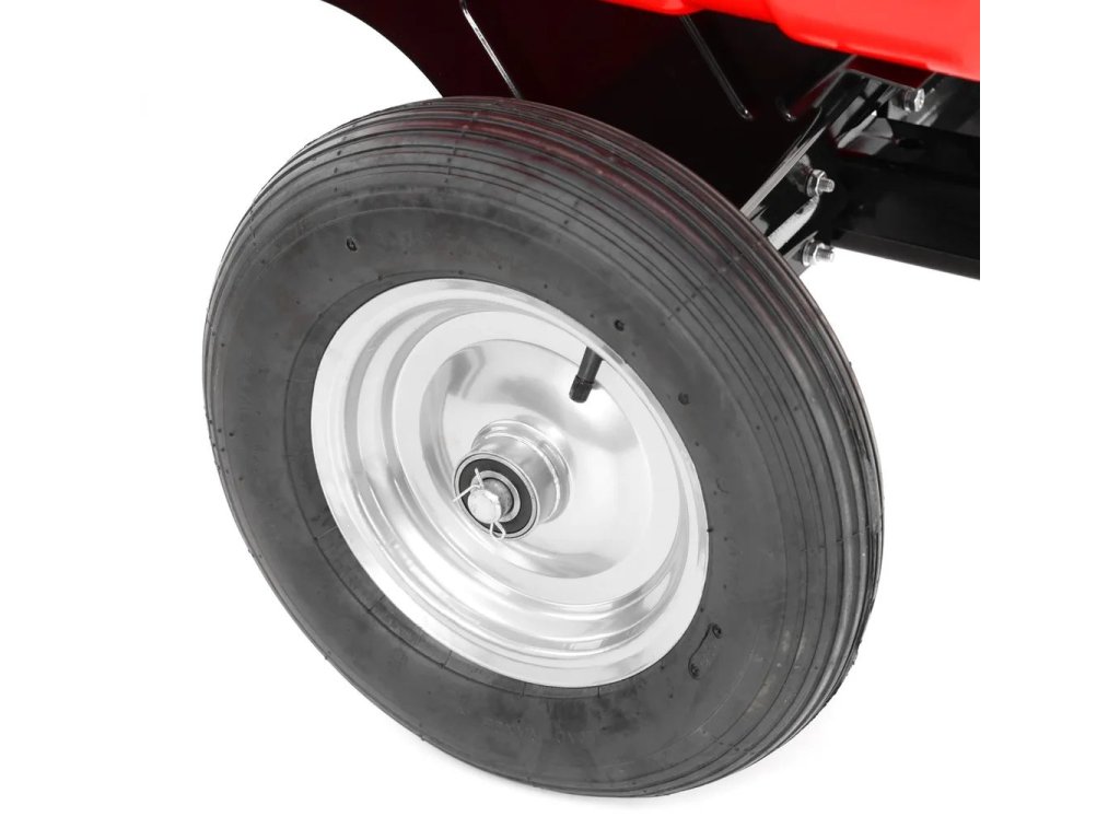 Základný rám vozíka je vyrobený z ocele, korba je z pevného vystuženého plastu. Oje vozíka sú skladacie, po zložení pod korbu dôjde k preklopeniu tretieho pojazdového kolesa, o ktoré sa potom vozík opiera. So zloženými ojami teda vozík možno použiť napríklad ako objemný záhradný vozík. S čalúneným madlom sa takto s vozíkom dobre manipuluje. Pri práci v záhrade takto ľahko môžete mať vozík neustále po ruke, bez toho aby ste museli neustále štartovať a jazdiť s traktorom. Po naplnení vozíka potom len vyklopíte oje, pripojíte ho a materiál ľahko kamkoľvek preveziete. K vyklopeniu vozíka nie je nutné oje odpájať, stačí uvoľniť korbu pomocou páky tiahla a pomocou madla, ktoré slúži na ručné jazdenie, celú korbu ľahko vyklopíte.