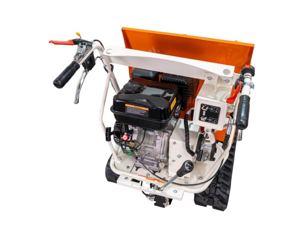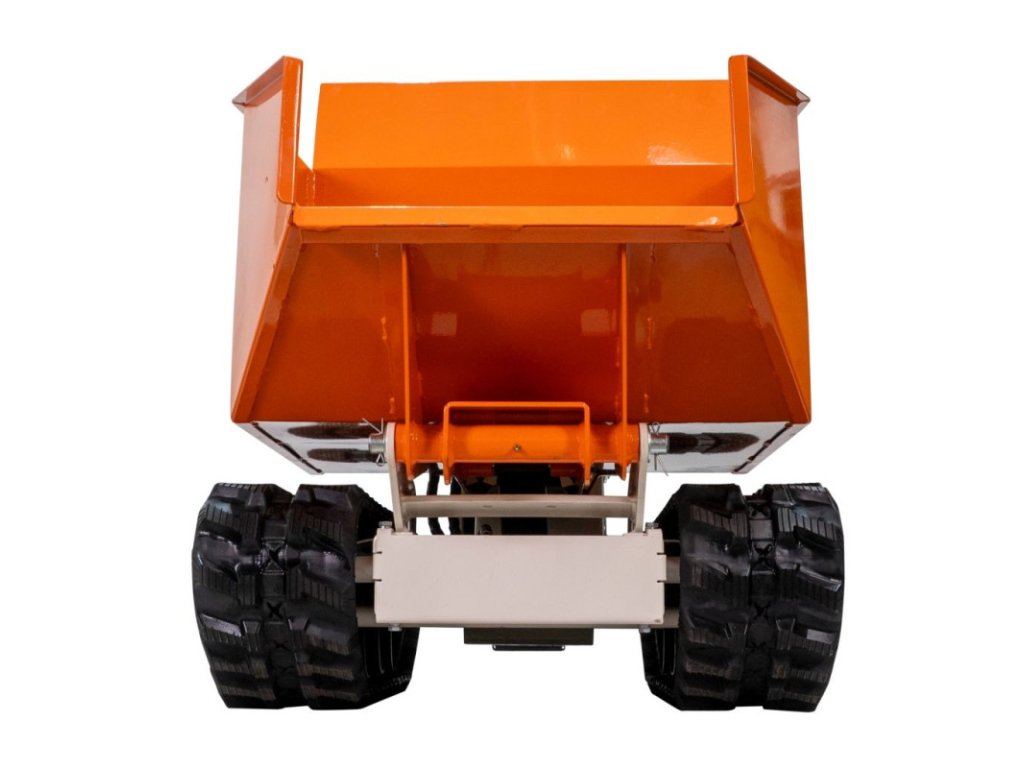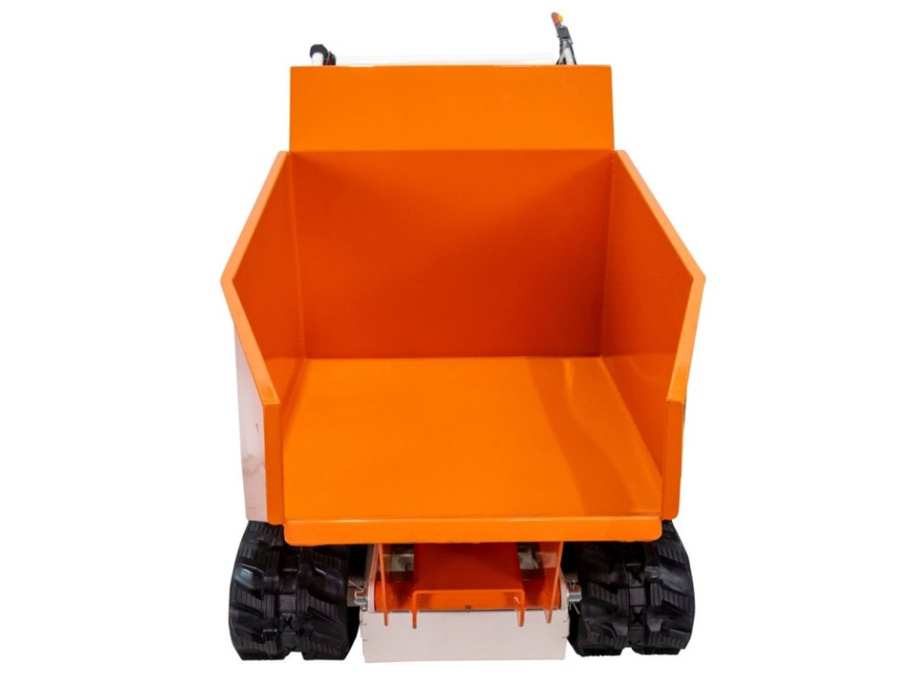 Stroj je vybavený hydraulickým sklápacím systémom, čo je dôležitá výhoda, ktorá značne zjednodušuje vykladanie ťažkých alebo objemných materiálov. Tento mechanizmus pomáha pri zdvíhaní vedra, čím znižuje potrebnú fyzickú námahu a umožňuje kontrolované, rýchle a bezpečné vyprázdňovanie, a to aj pri maximálnom zaťažení.