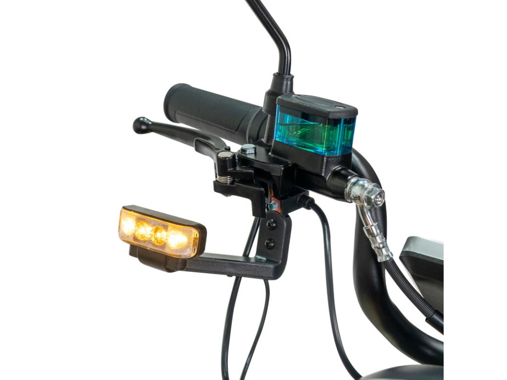 Elektrická trojkolka RURIS Pilot 3020A je vybavená kombinovaným brzdovým systémom, ktorý obsahuje prednú kotúčovú brzdu a zadnú bubnovú brzdu – táto konfigurácia ponúka vynikajúcu rovnováhu medzi bezpečnosťou, účinnosťou a odolnosťou.