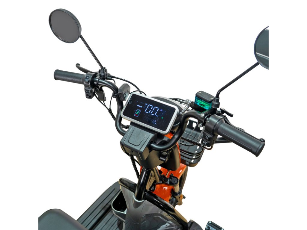 Trojkolka je vybavená extra veľkým LCD displejom, čo je významná výhoda, ktorá výrazne zlepšuje používateľský zážitok. Veľkorysý displej umožňuje jasné a rýchle čítanie všetkých dôležitých informácií – rýchlosti, úrovne nabitia batérie, počtu najazdených kilometrov a ďalších funkcií – aj za jasného osvetlenia, čo prispieva k bezpečnejšiemu a intuitívnejšiemu používaniu.
