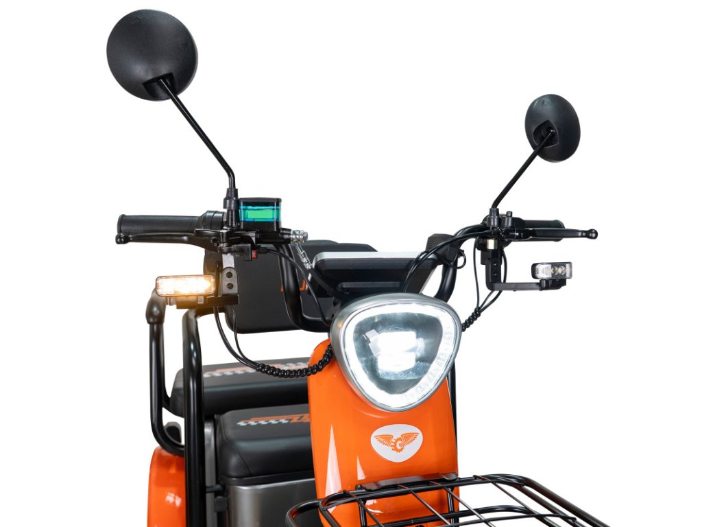 Vďaka kompaktnému dizajnu s dvoma sedadlami usporiadanými za sebou a tichému elektromotoru je trojkolka ideálna pre vidiecke aj mestské prostredie.