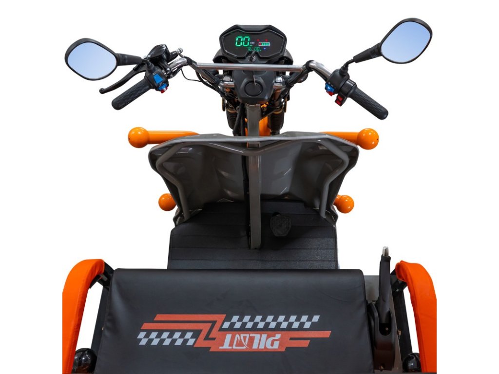 Trojkolka je vybavená extra veľkým LCD displejom, ktorý výrazne zlepšuje používateľský komfort. Veľkorysá obrazovka umožňuje rýchle a prehľadné zobrazenie všetkých dôležitých údajov – rýchlosti, stavu batérie, počtu najazdených kilometrov a ďalších funkcií – aj pri jasnom dennom svetle. Prispieva tak k bezpečnejšiemu a intuitívnejšiemu používaniu.