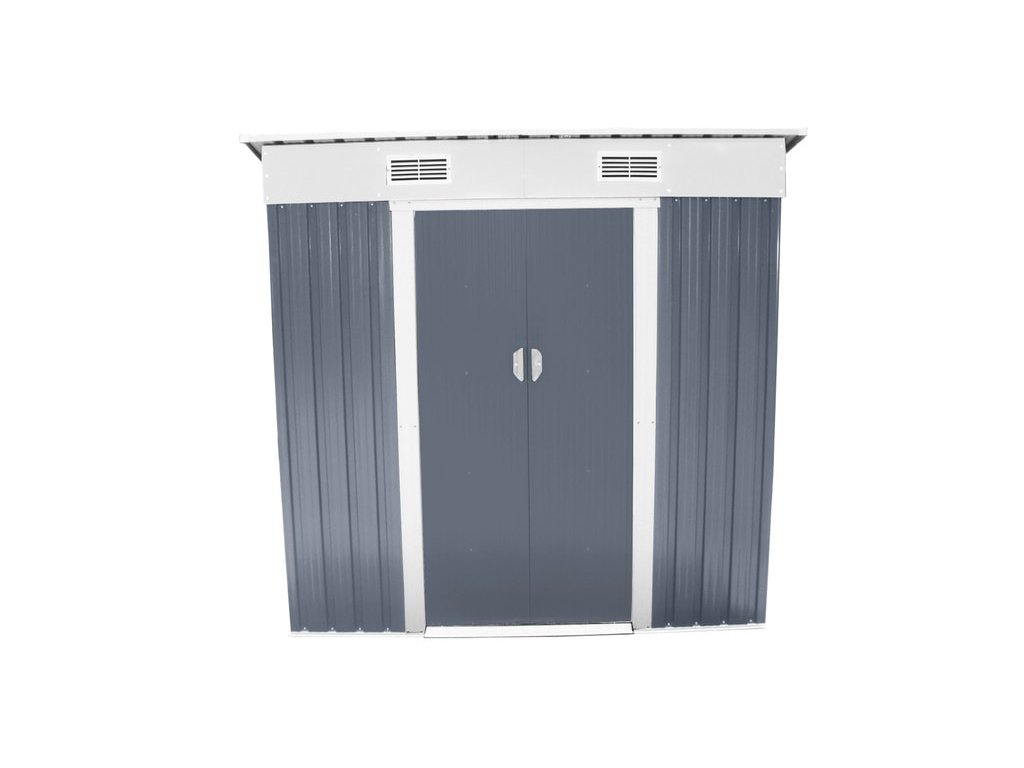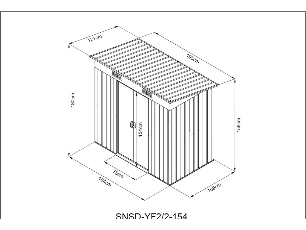 Výška dverí tohto domčeka je 1540 mm, vďaka posuvné konštrukcii nemôže dôjsť k ich vyvráteniu a poškodeniu napríklad nárazom vetra. Šírka otvorených dverí je 750 mm. Šikovné odvetrávacie mriežky zaistia ventiláciu vzduchu. V domčeku sa tak nemôže hromadiť vlhkosť, čím sa zamedzí zbytočnej korózii uskladneného materiálu a náradia.